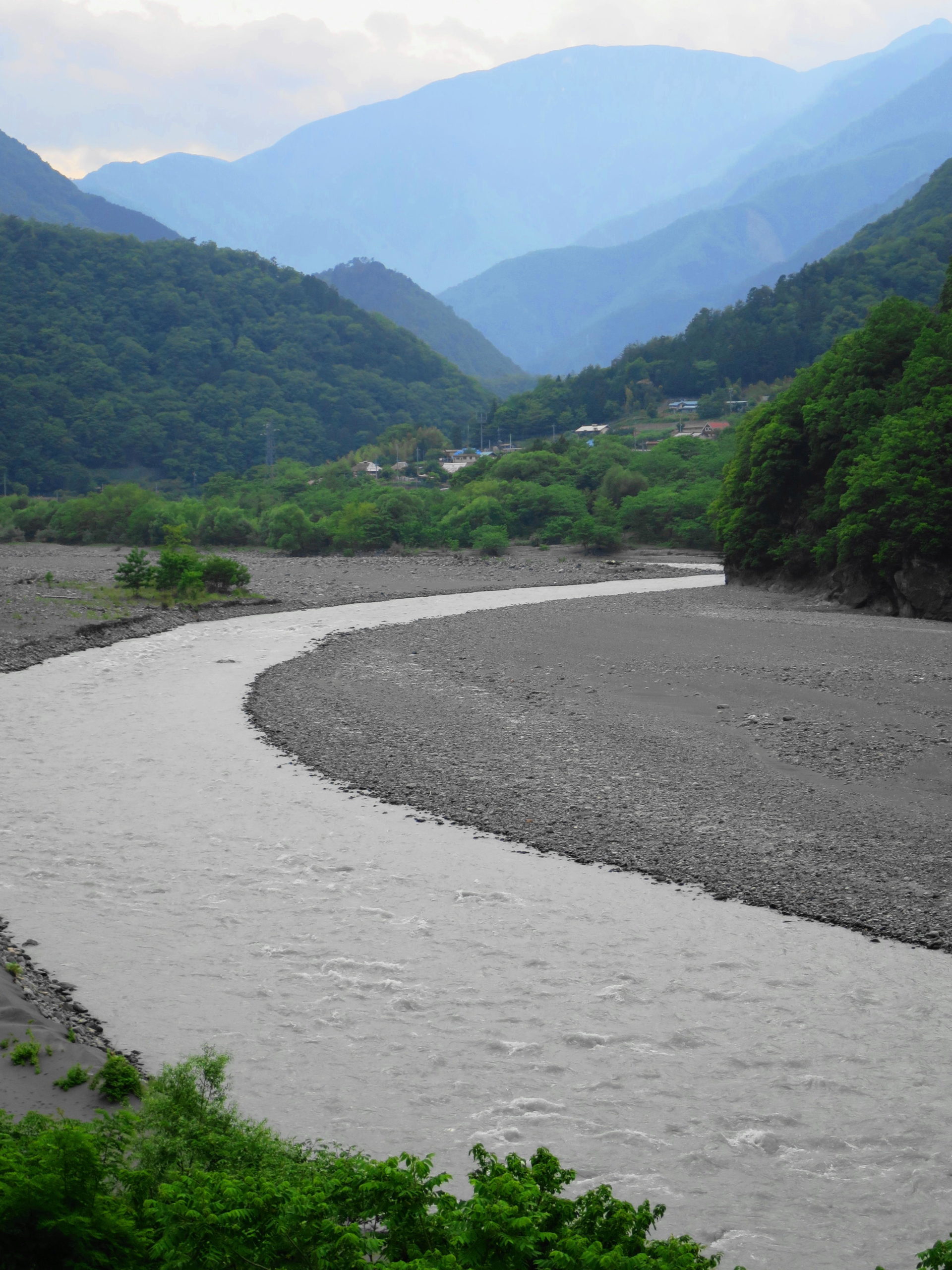 南アルプスの山々に囲まれた「早川入り」の奥へと車を走らせます(平成30年5月中旬、山梨県早川町)。