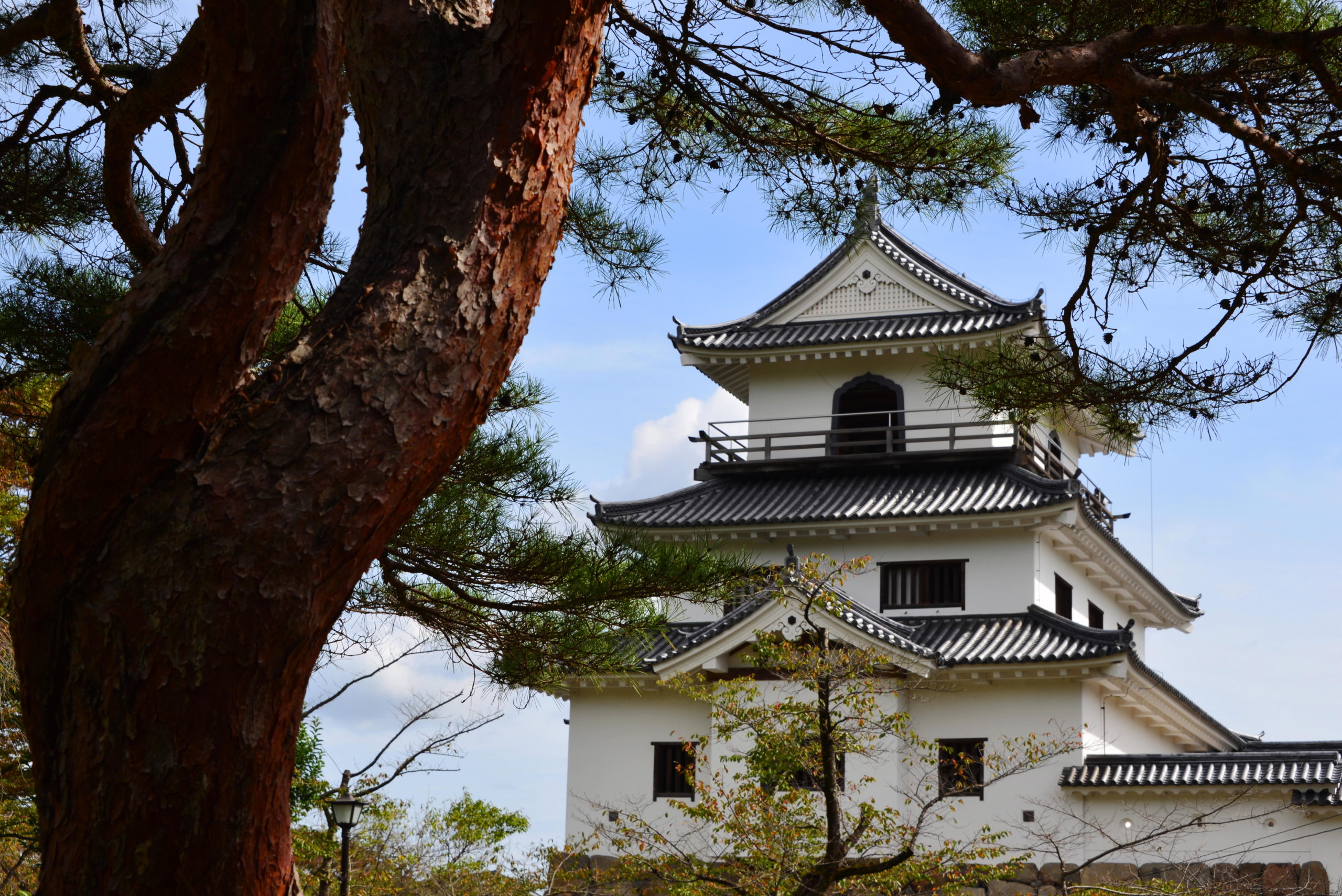 (写真は、木造復元の三階櫓)