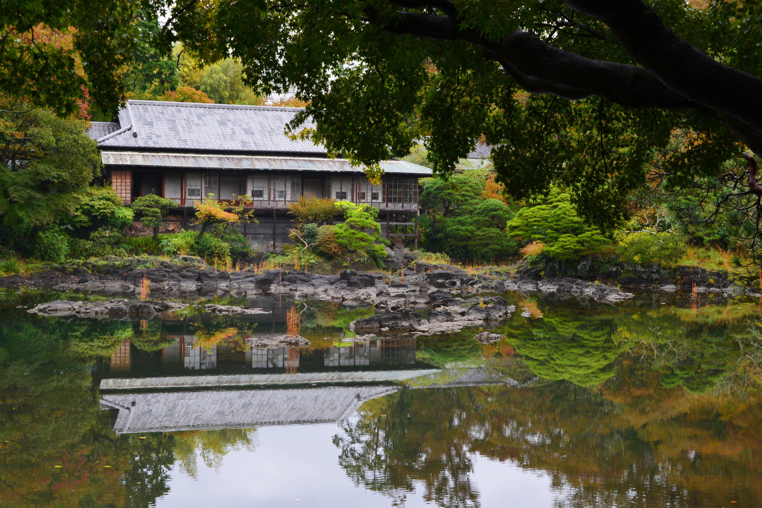 (写真は、小浜池から望む楽寿館)