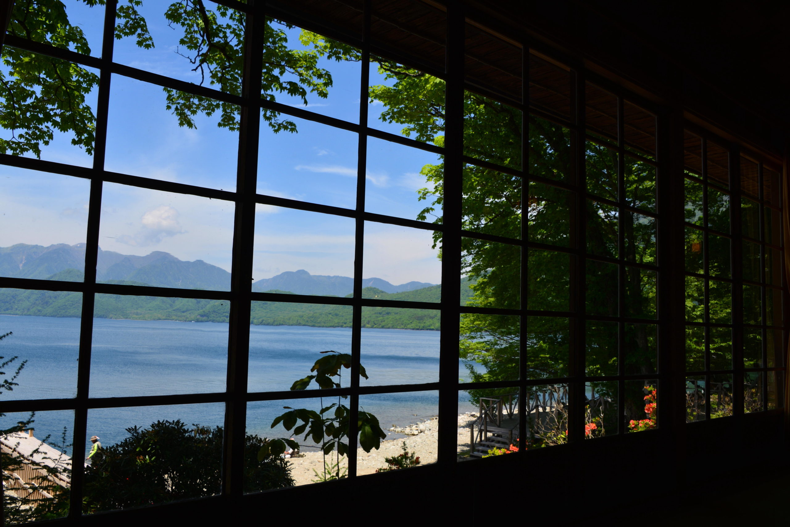第二いろは坂を登り、中禅寺湖畔へ。寒冷地の奥日光は、今まさに新緑眩しい季節です。