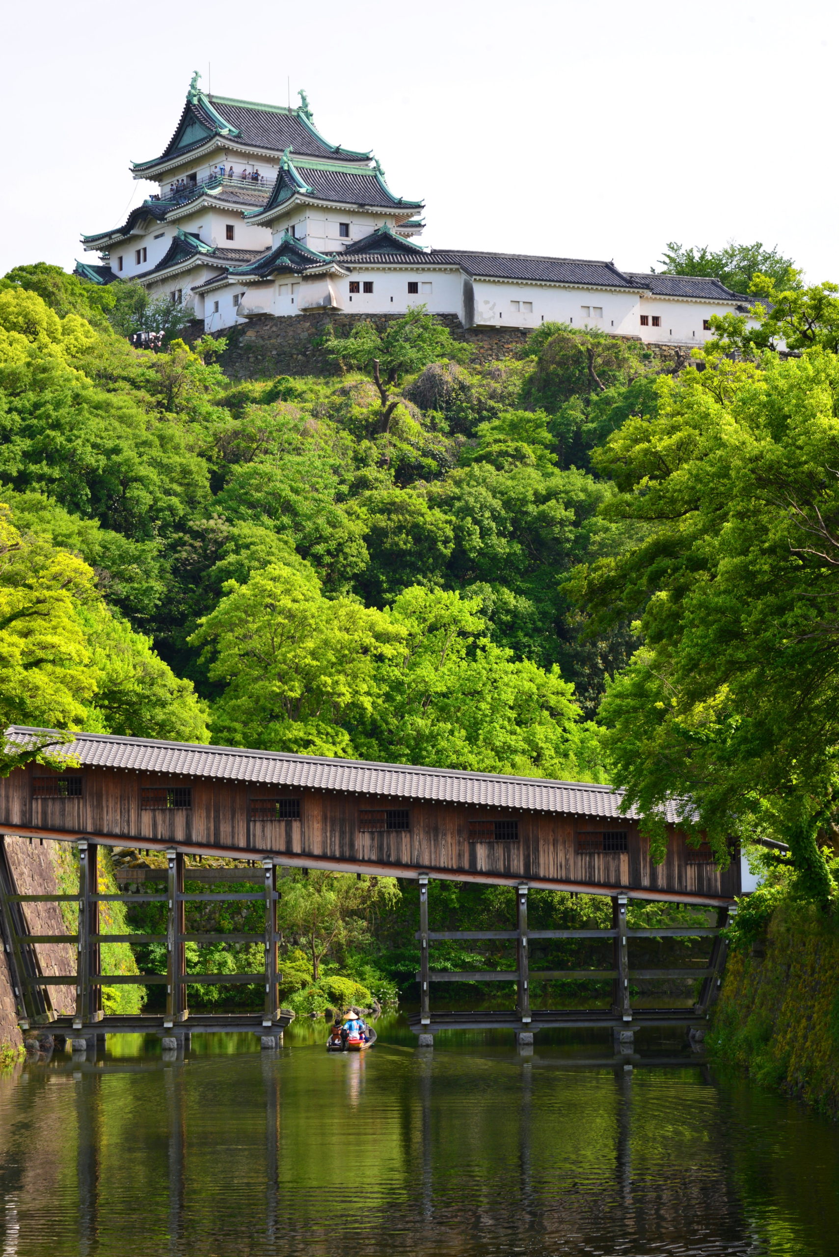 まずは内堀越しに、天守と斜めの御橋廊下を望みます。