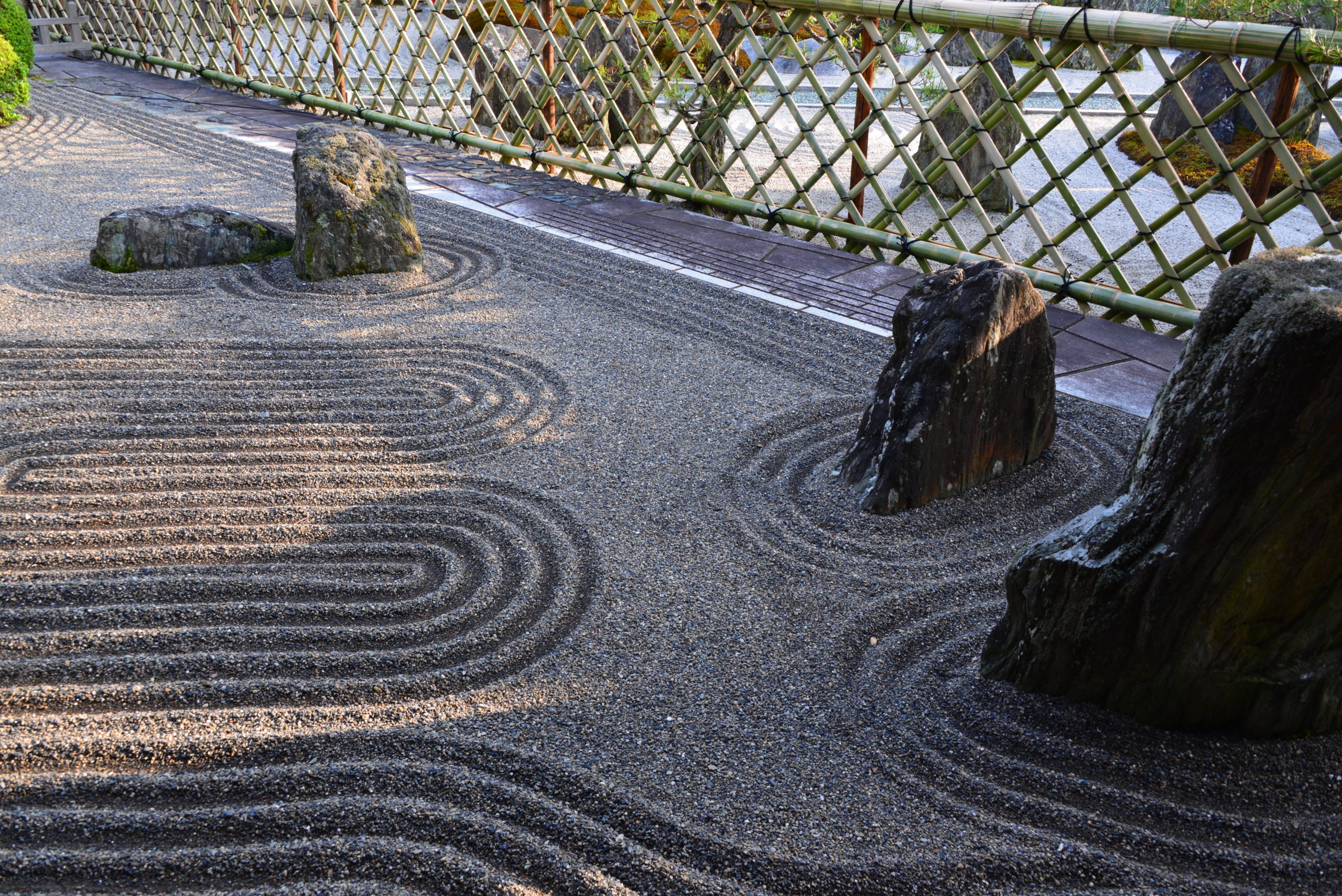 とりわけ、小堀遠州(こぼりえんしゅう、江戸初期)や重森三玲(しげもりみれい、昭和)作の庭園はいずれも素晴らしいのですが、殆どの宿坊は拝観を宿泊者に限っています。